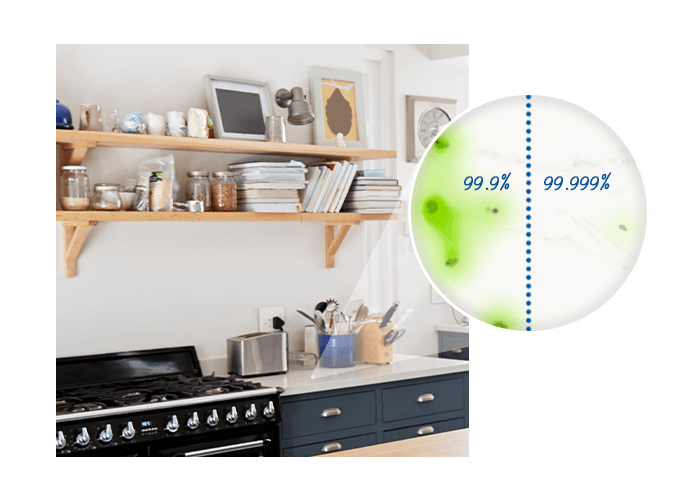 - Kills common food preparation bacteria including E-Coli, Salmonella and Listeria in less than 60 seconds